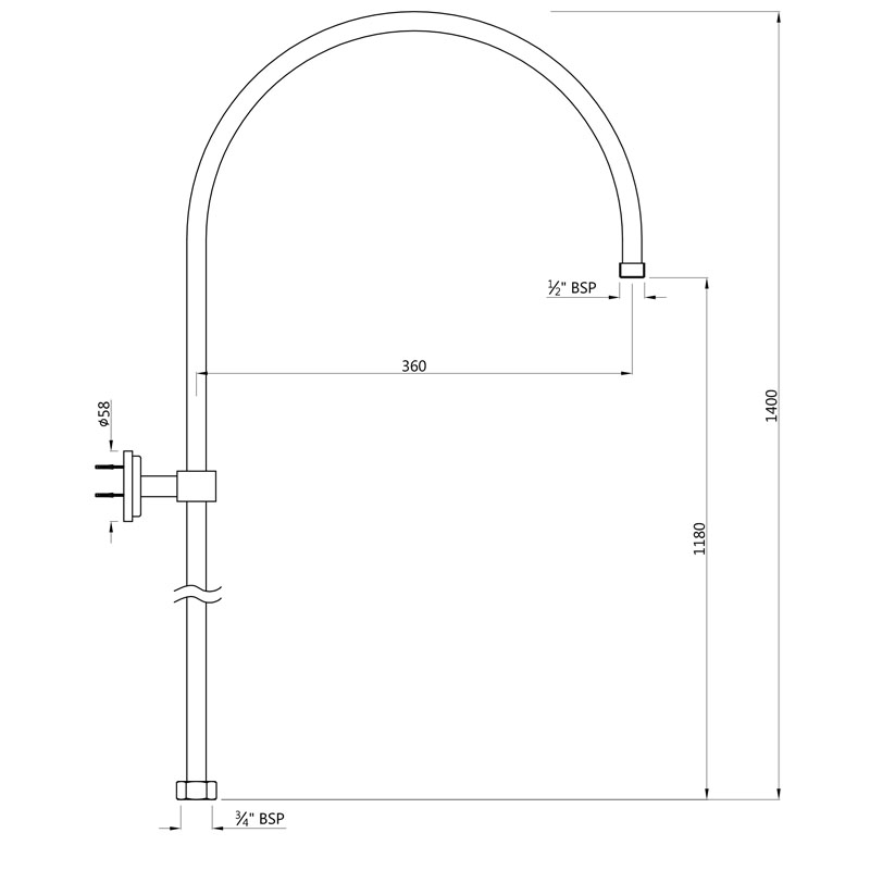 Exposed Shower Pipe For Wall Mixer Round Shape ?16mm, Size 1375X375mm with Wall Bracket (for Connecting Overhead Shower)