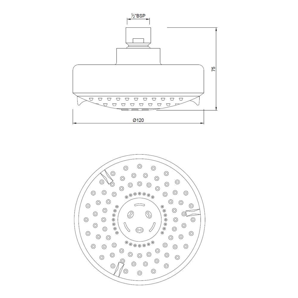 Overhead Shower ?120mm Round Shape Multi Flow (ABS Body Chrome Plated with Gray Face Plate) with Rubit Cleaning System