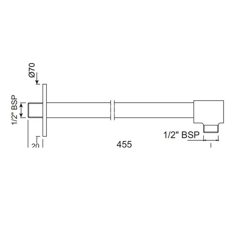 Shower Arm Straight ?20mm & 450mm Long Round Shape without Bend For Wall Mounted Showers with Flange