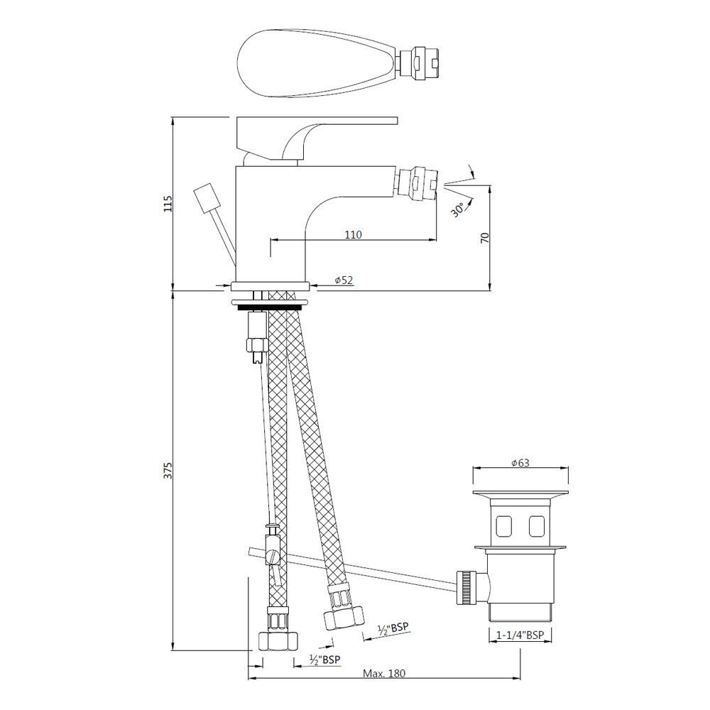 Mixer with Popup Waste System with 375mm Long Braided Hosed