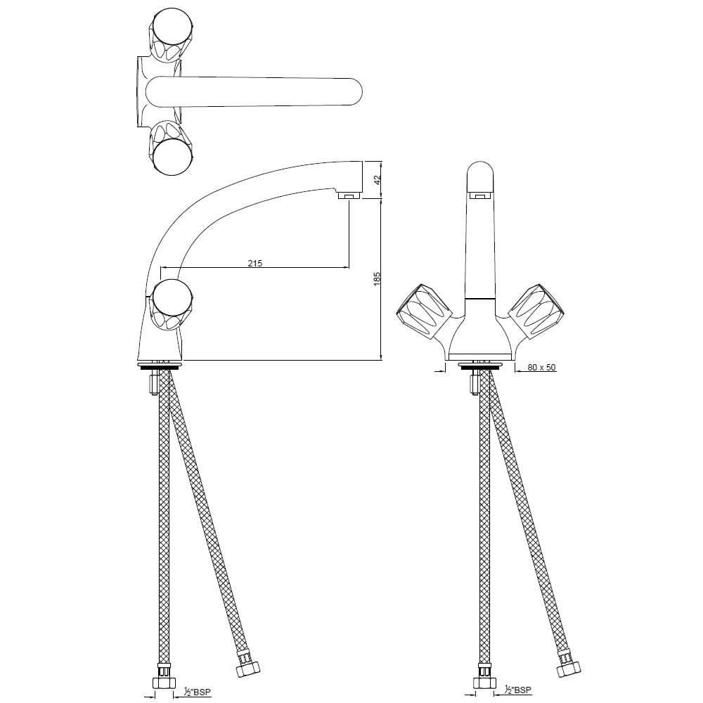 Sink Mixer with Extended Spout (Table Mounted Model) with 450mm Long Braided Hoses