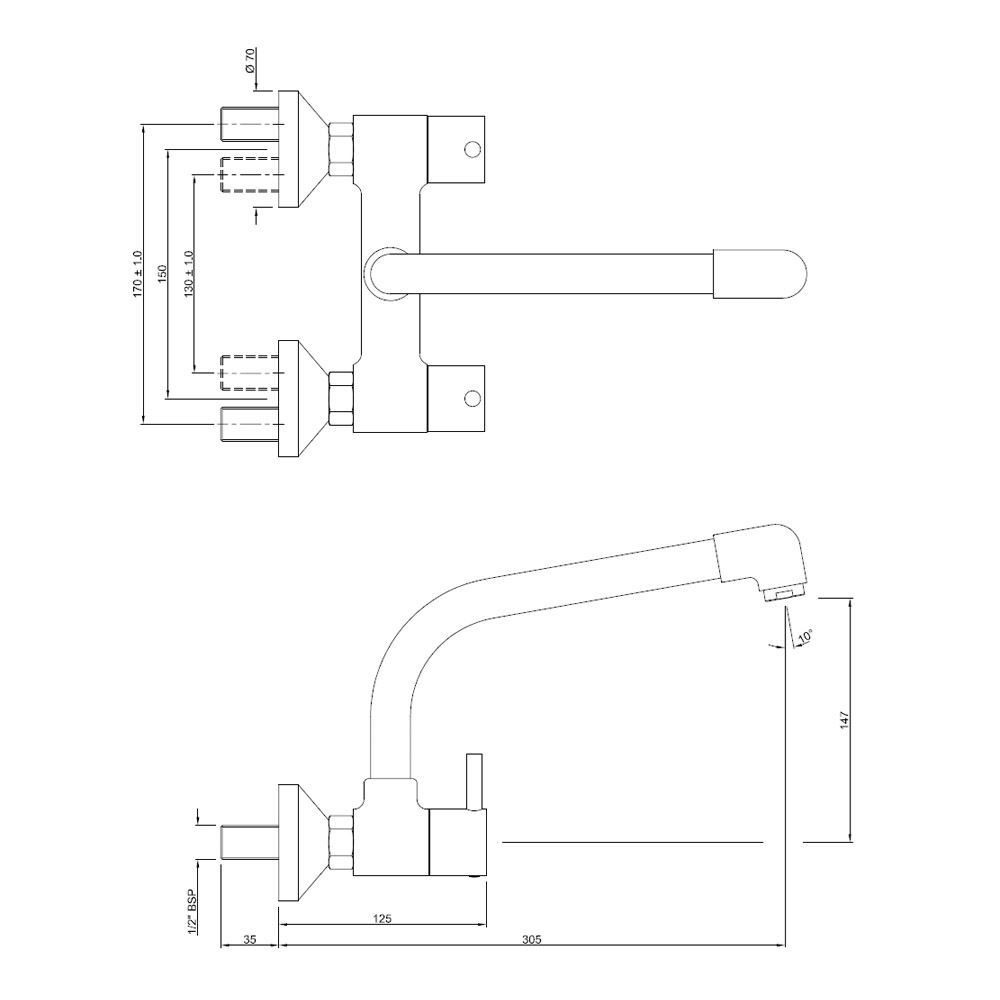 Sink Mixer with Extended Swinging Spout (Wall Mounted Model) with Connecting Legs & Wall Flanges