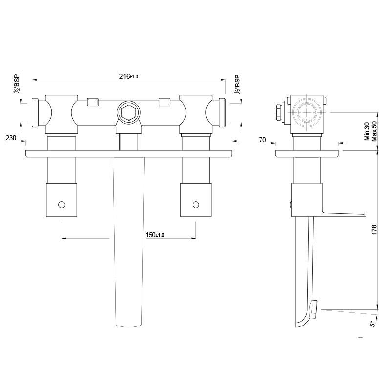 Two Concealed Stop Cocks with Basin Spout (Composite One Piece Body)