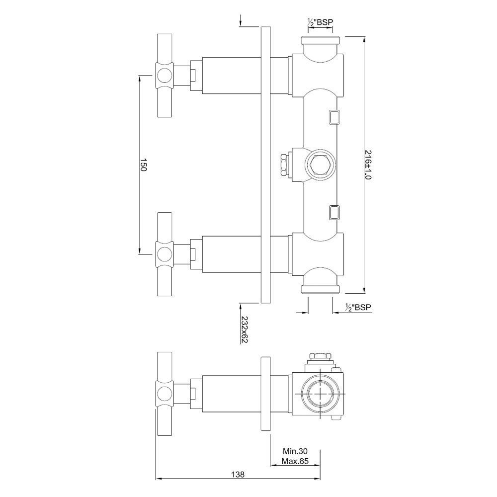 Two Concealed Stop Cocks (Composite One Piece Body)