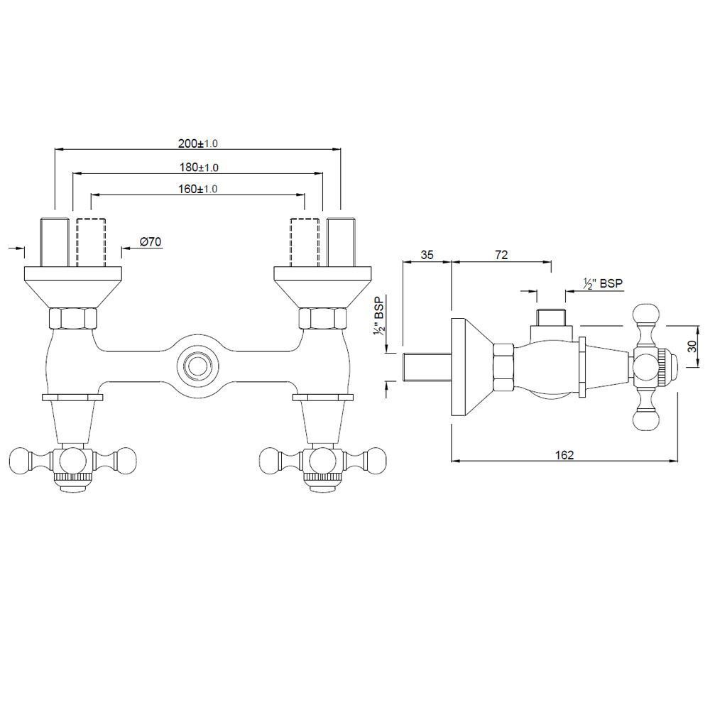 Shower Mixer for Shower Cubicles (Wall Mounted) with Connecting Legs & Flanges