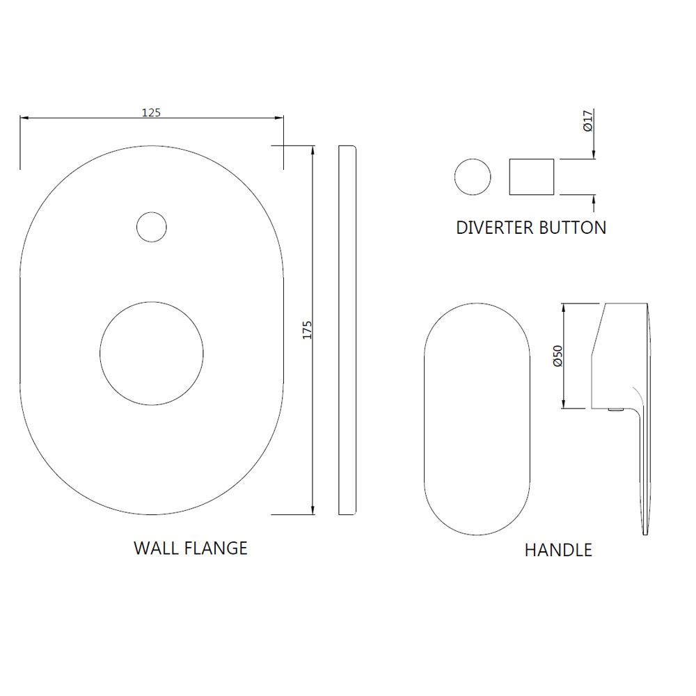 Single Lever Exposed Part Kit of Diverter Consisting of Operating Lever, Wall Flange (with Seals) & Button Only (Suitable For Item ALD-065)