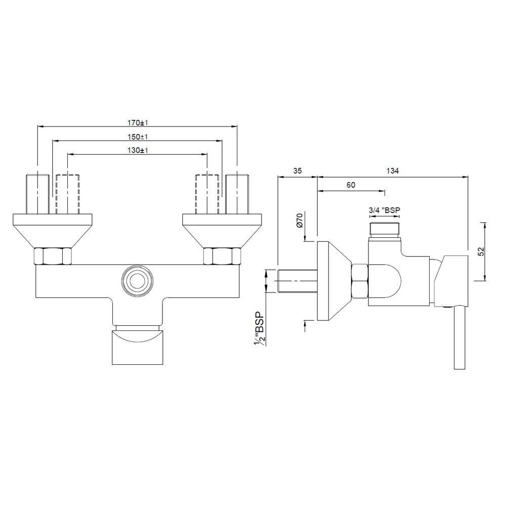 Single Lever Exposed Shower Mixer With Provision For Connection to Exposed Shower Pipe (SHA-1211) With Connecting Legs & W all Flanges