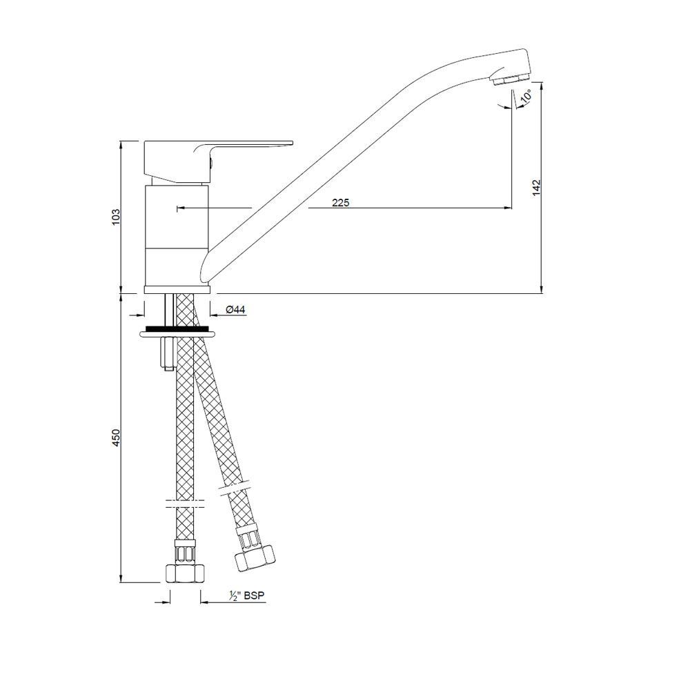 Single Lever Sink Mixer with Swinging Spout (Table Mounted) with 450mm Long Braided Hoses