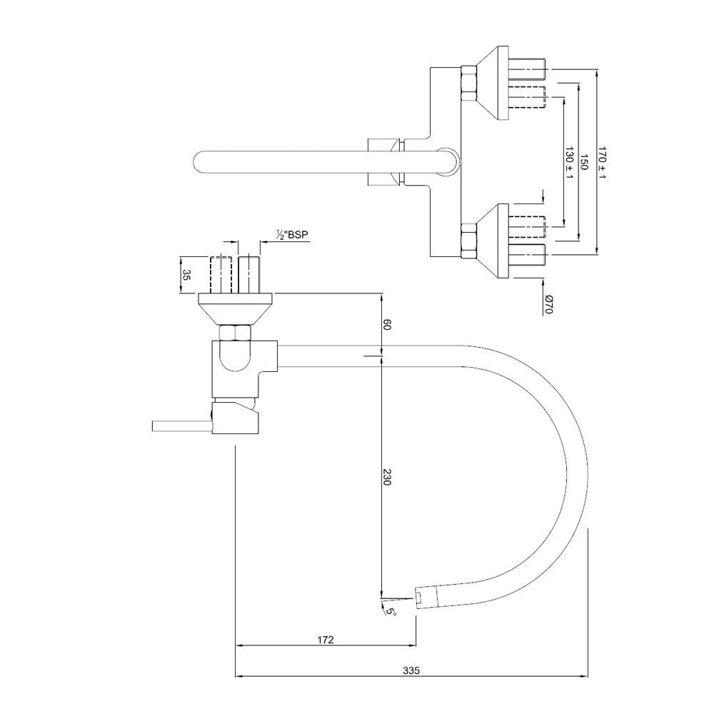 Single Lever Sink Mixer With Swinging Spout on Upper Side (Wall Mounted Model) With Connecting Legs & Wall Flanges