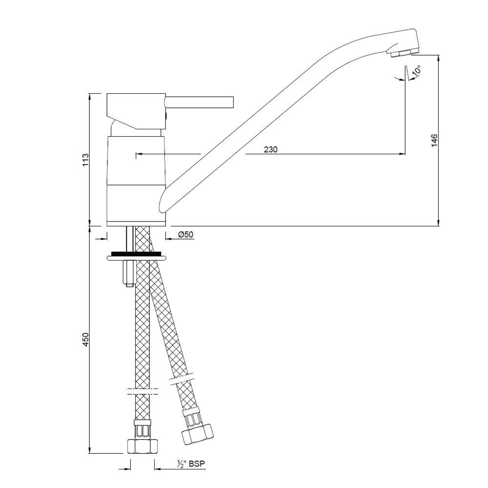 Single Lever Sink Mixer with Swinging Spout (Table Mounted) with 450mm Long Braided Hoses
