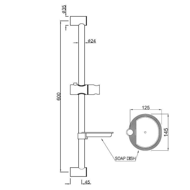 Sliding Rail ?24mm & 600mm Long Round Shape with Hand Shower Holder & Soap Dish