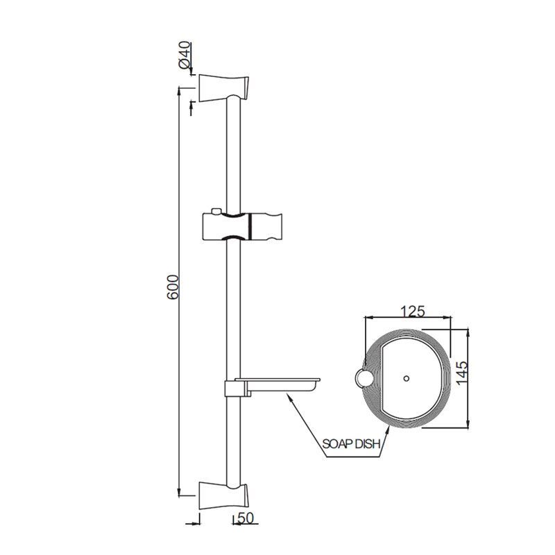 Sliding Rail ?19mm & 600mm Long Round Shape with Hand Shower Holder & Soap Dish