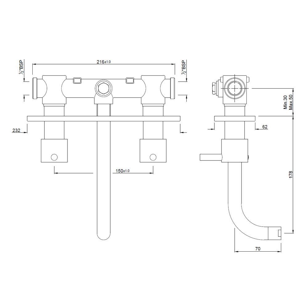 Two Concealed Stop Cocks with Basin Spout (Composite One Piece Body)